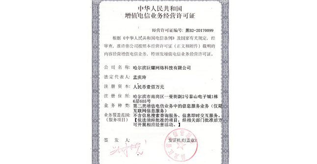 | 哈爾濱巨耀網(wǎng)絡(luò)科技有限公司·版權(quán)所有 | 地址:哈爾濱市南崗區(qū)西大直街118號(hào)哈特大廈17層 |